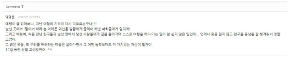 선생님들 그동안 고생 많으셨어요. 감사했습니다. 집에서 푹 쉬시고 다음 여행도 힘 내세요! 그리고 이번 여행 함께했던 언니 오빠 친구 동생들 모두 덕분에 많이 즐거웠어요 고맙습니다 ㅎㅎ 안녕!
