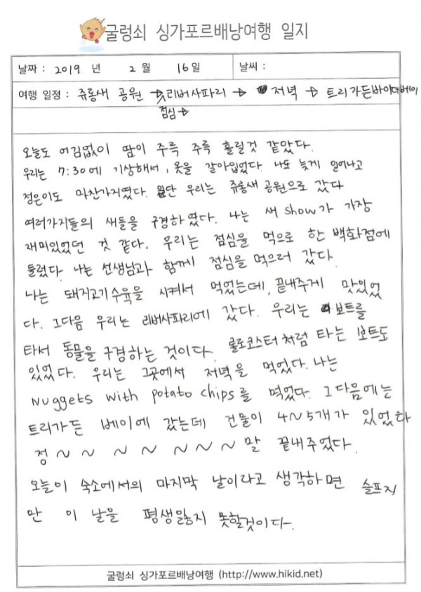 오늘이 숙소에서의 마지막 날이라고 생각하면 슬프지만 이 날을 평생 잃지 못할 것이다.