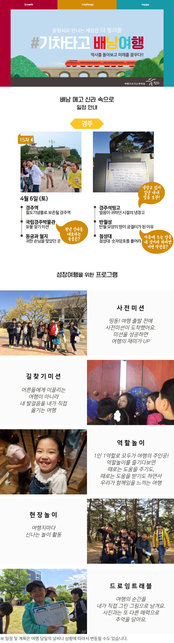 부모님들의 여러 요청과 굴렁쇠의 신중한 고민으로 열게 된 프로그램입니다. 여행지는 경주역사지구 일대입니다.