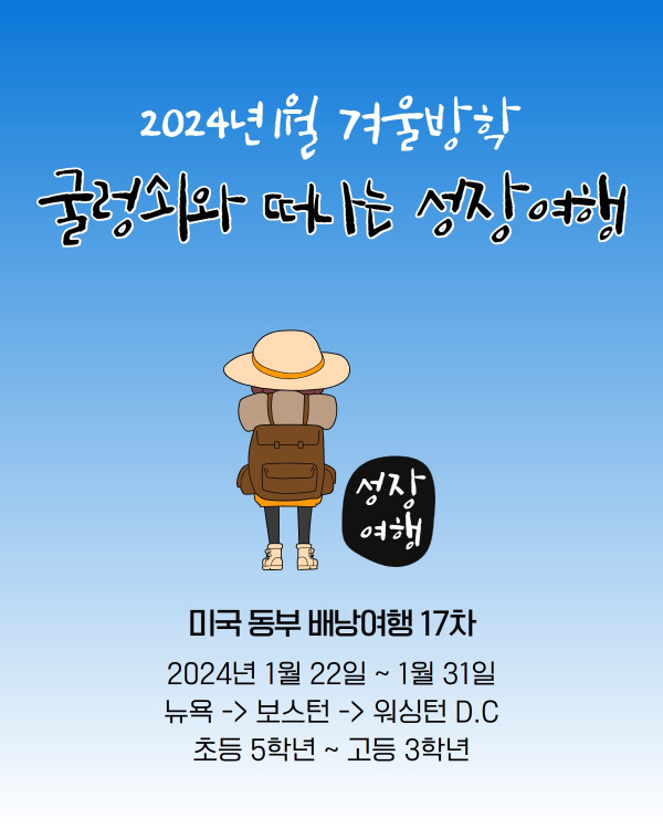 [마감] 굴렁쇠 미국 동부 자기주도여행 17차 (2024년 1월 22일 출발)