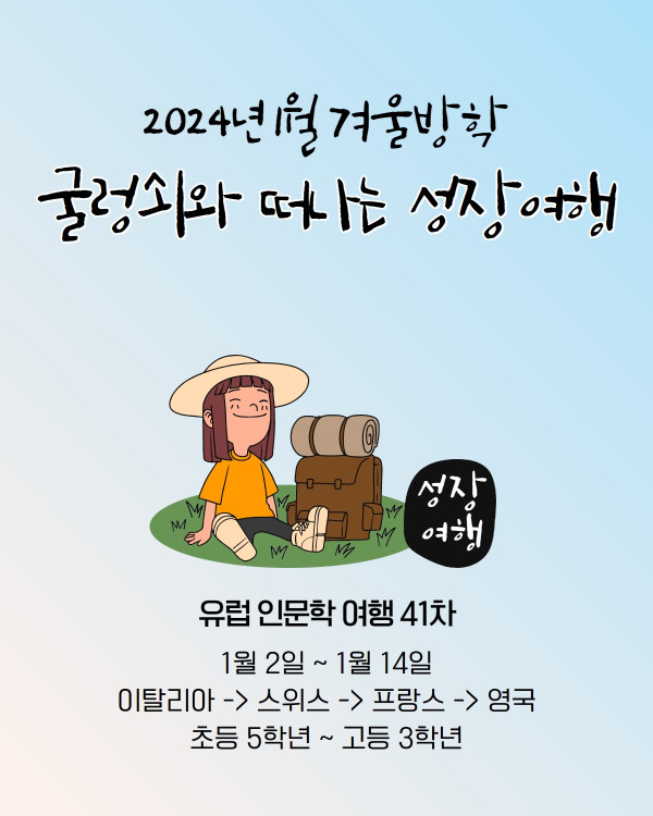[마감] 굴렁쇠 유럽 인문학 자기주도 여행 41차 (2024년 1월 2일 출발)